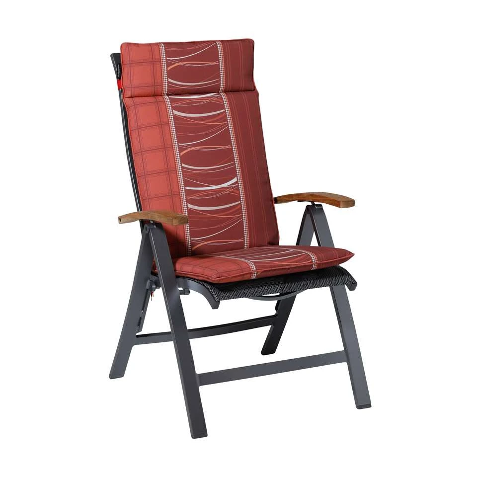 Een tuinkussen nodig voor uw houten, stalen of kunststof tuinstoel? Geef uw tuinstoel dan meer comfort en uitstraling met het nieuwe type hoge rug van Madison. Ondanks dat het kussen dunner is geworden heeft het nog steeds de kwaliteit en kracht van een dik, luxe kussen. Het model is perfect voor uw stoel met verstelbare rugleuning. Voorzien van een verstelbare band aan de achterkant en touwtjes, blijft het kussen hoog goed in de stoel zitten.