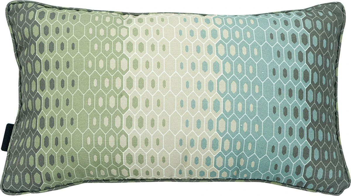 Het dessin Suzy is een moderne streep met grafische aspecten. Het design is te combineren bij meerdere kleurnuances, Het dessin is verkrijgbaar in de kleurinten natural en azur. Het kussen is gemaakt van Panama eco-fabrics die voor 70% uit gerecylede stof bestaat. (50% katoen, 45% polyester en 5% andere vezels). Dit zorgt ervoor dat het kussen sterker is dan katoen en daarbij beter zijn kleur behoudt.