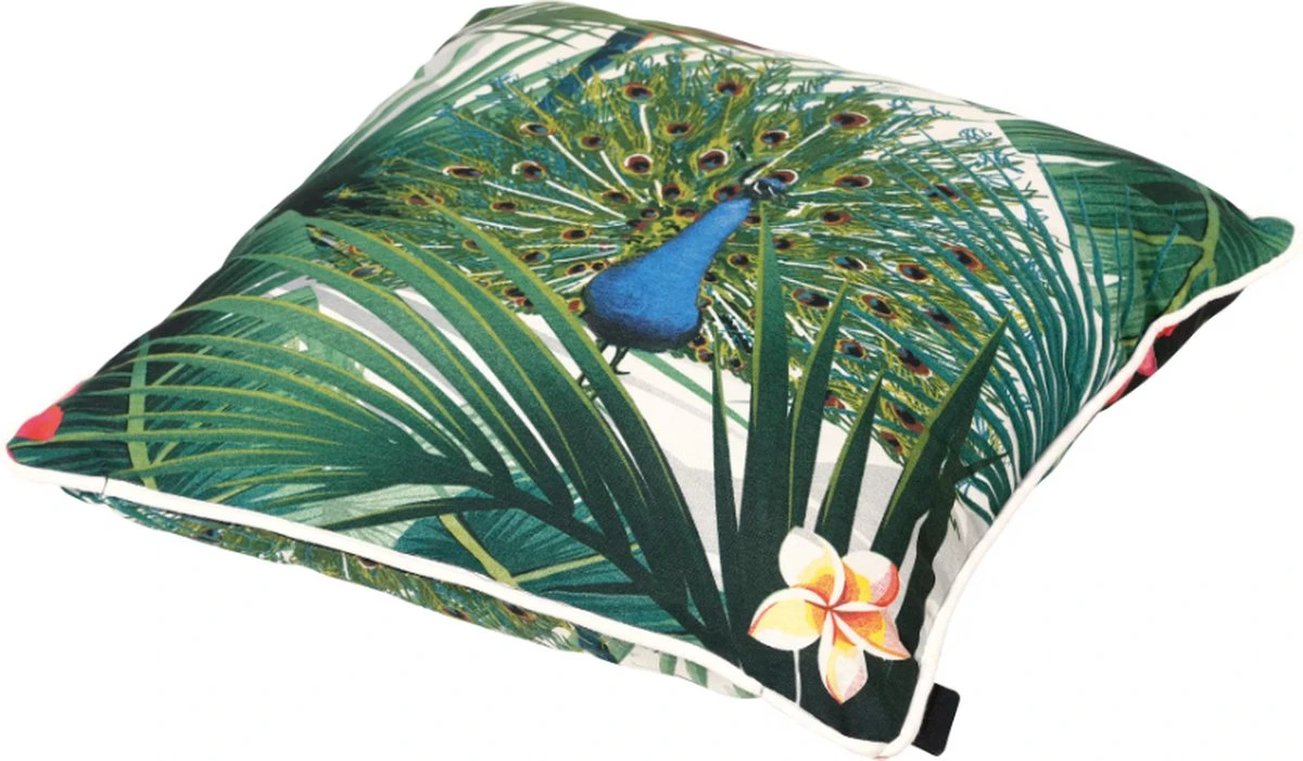 Dit sierkussen is passend in bijna alle tuinmeubelen en erg leuk als decoratie voor binnen en buiten. Dit sierkussen heeft een totale afmeting van ca. 50×50 cm. Het merk van het sierkussen is Madison. De samenstelling van katoen en polyester voelt zacht aan, maar is ook sterk en beter bestand tegen verkleuring. Let op: kussen is waterafstotend niet waterdicht. Dit houd in dat het kussen niet buiten kan blijven liggen in regen en dauw.