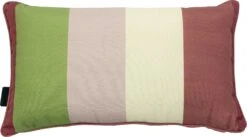 Madison sierkussen Vivero, is gemaakt van katoen en polyester, heeft een stepen patroon in de kleuren bordeaux, groen en crème. Het kussen is voorzien van een rits sluiting, hierdoor heeft het kussen een afneembare hoes die je gemakkelijk kunt wassen.