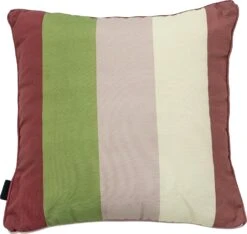 Madison sierkussen Vivero, is gemaakt van katoen en polyester, heeft een stepen patroon in de kleuren bordeaux, groen en crème. Het kussen is voorzien van een rits sluiting, hierdoor heeft het kussen een afneembare hoes die je gemakkelijk kunt wassen.