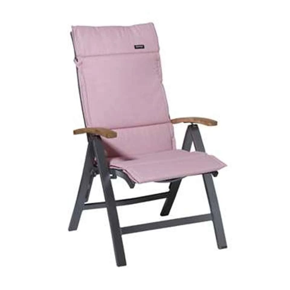 - Het is een zacht roze tuinstoelkussen.